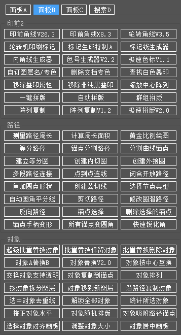 - 印前:各种角线生成、专色 / 墨印处理、缩排阵列;