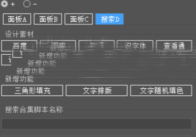 自带设计素材搜索(连设计宝藏网站都直接链)、新增三角形填充 / 文字排版等小功能,还能搜脚本本名,找工具不用翻遍面板。